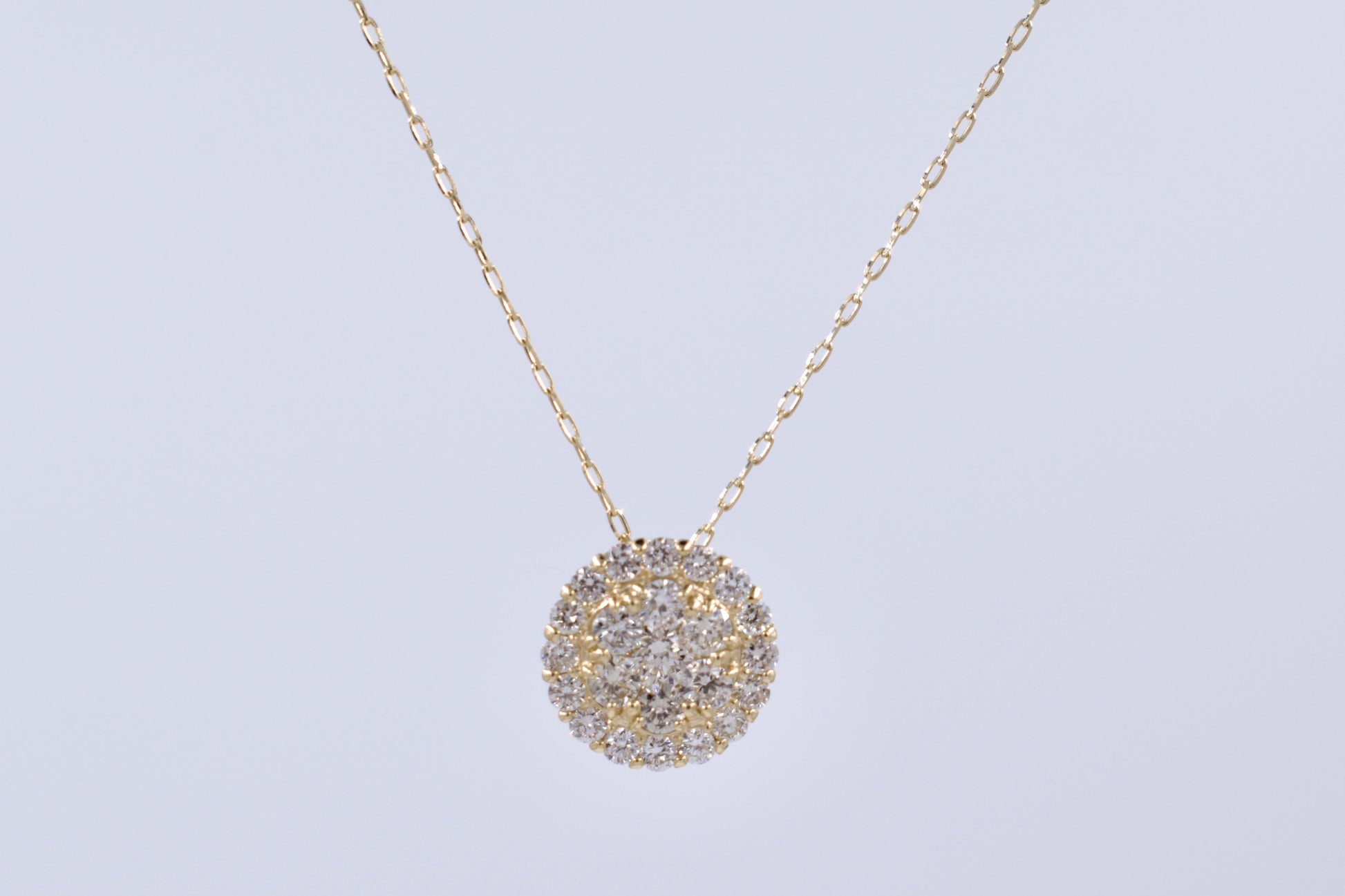This 18ct Yellow Gold Diamond Slider Necklace boasts a stunning illusion claw set diamond pendant, complete with a glamorous diamond halo. Suspended on an oval link chain with a secure bolt ring clasp, it's the perfect choice for adding a touch of elegance to any outfit.