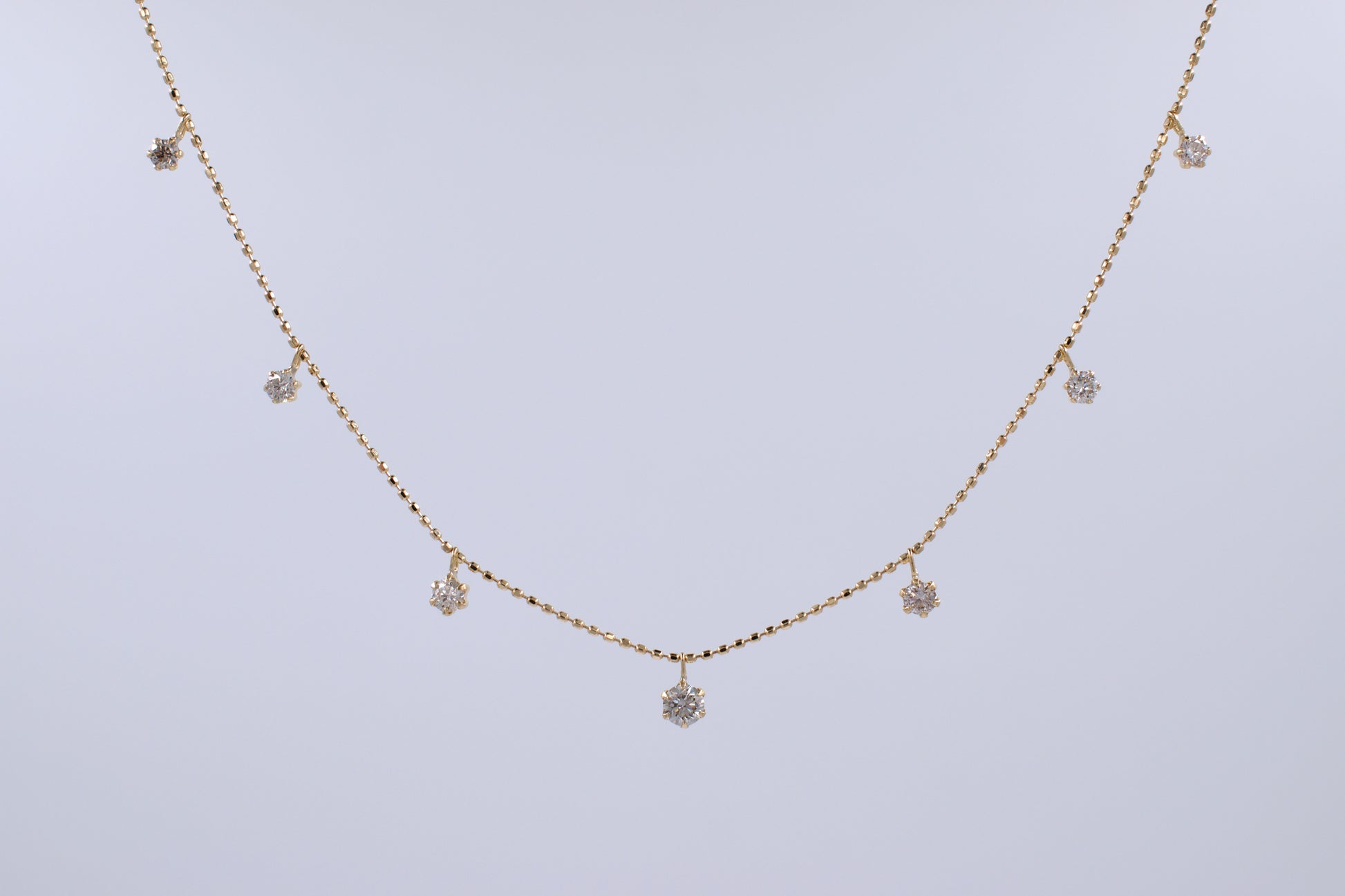 This 18ct Yellow Gold necklace features an adjustable ball chain, adorned with Diamonds in claw settings, and secured with a bolt ring clasp. It's the perfect addition to your accessory collection.