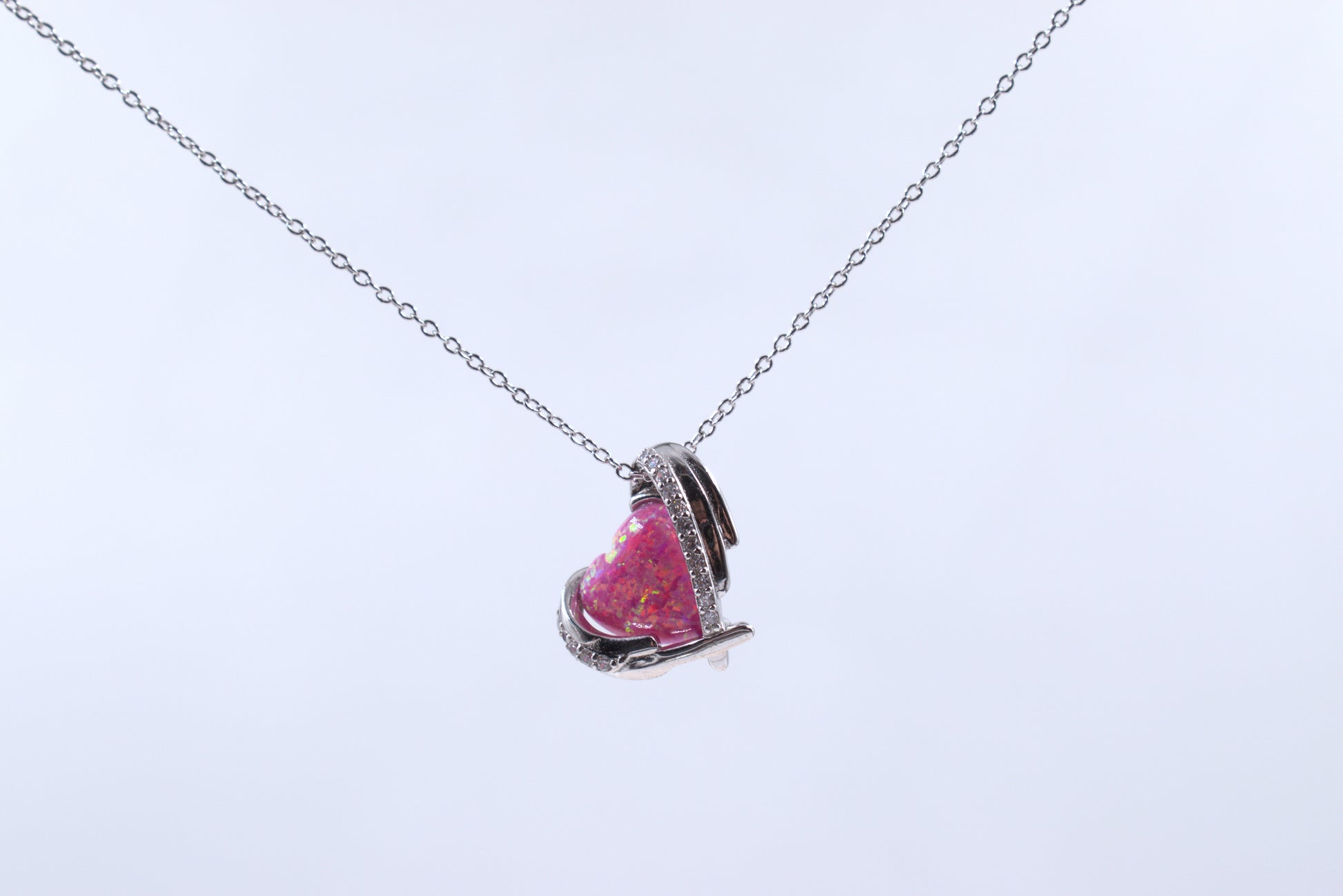 Sterling Silver Lab Grown Pink Heart Opal Necklace (October Necklace)