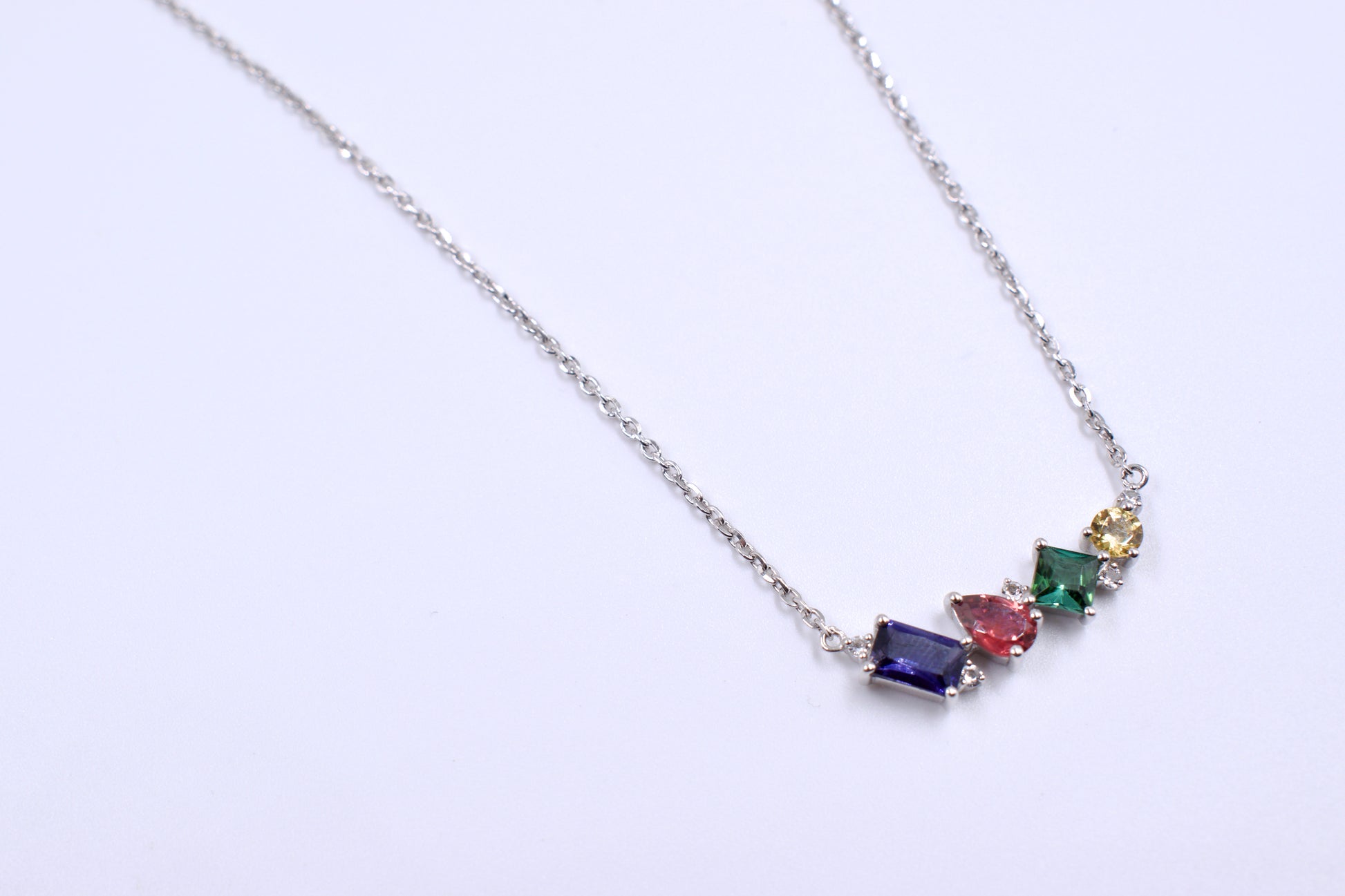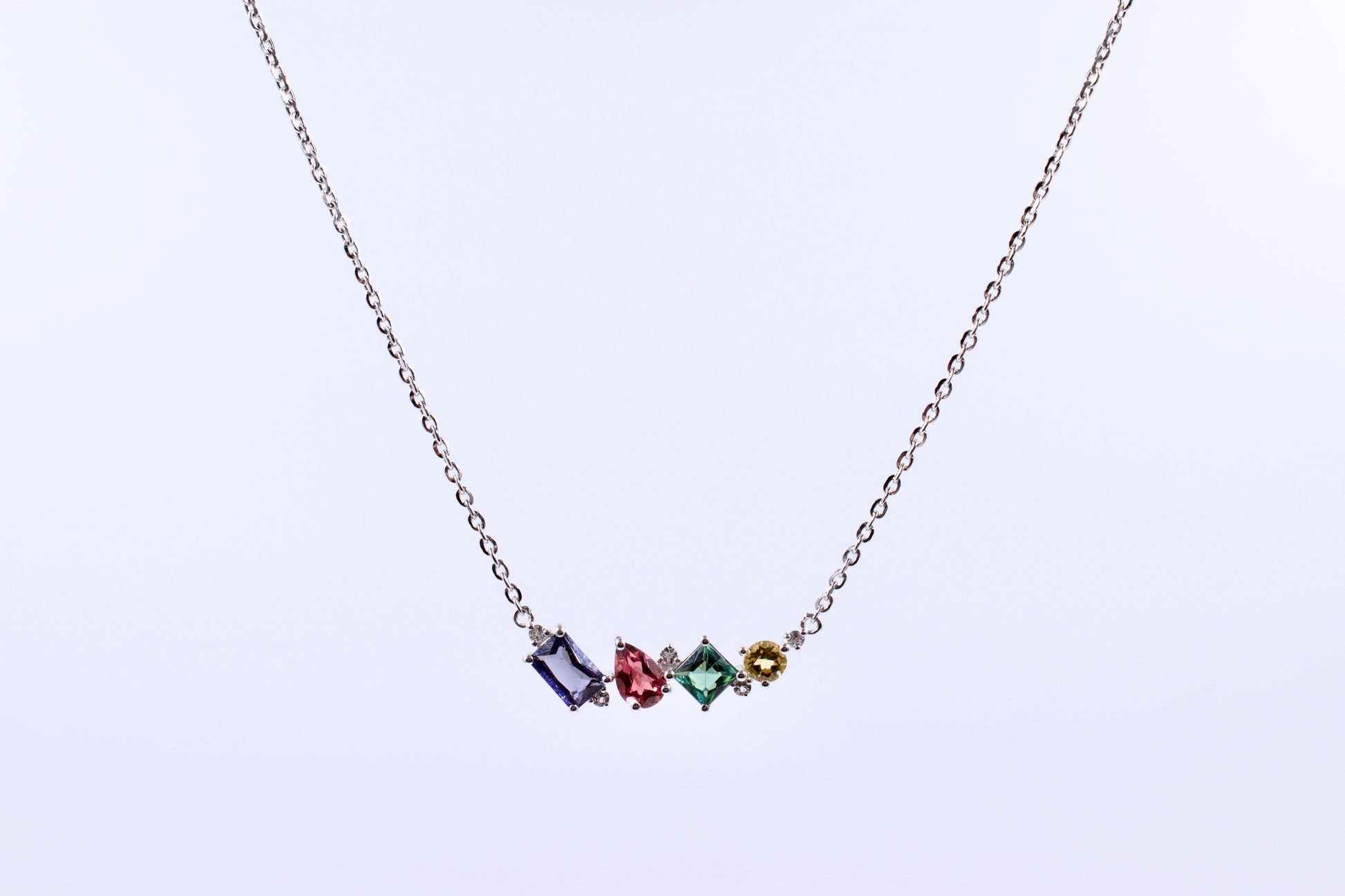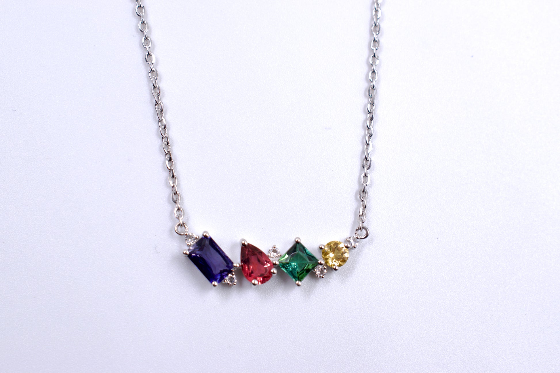Transform your look with this stunning Sterling Silver necklace adorned with vibrant Semi Precious stones in secure claw settings. Featuring an adjustable oval chain and a convenient bolt ring clasp, it's a must-have accessory for any occasion.