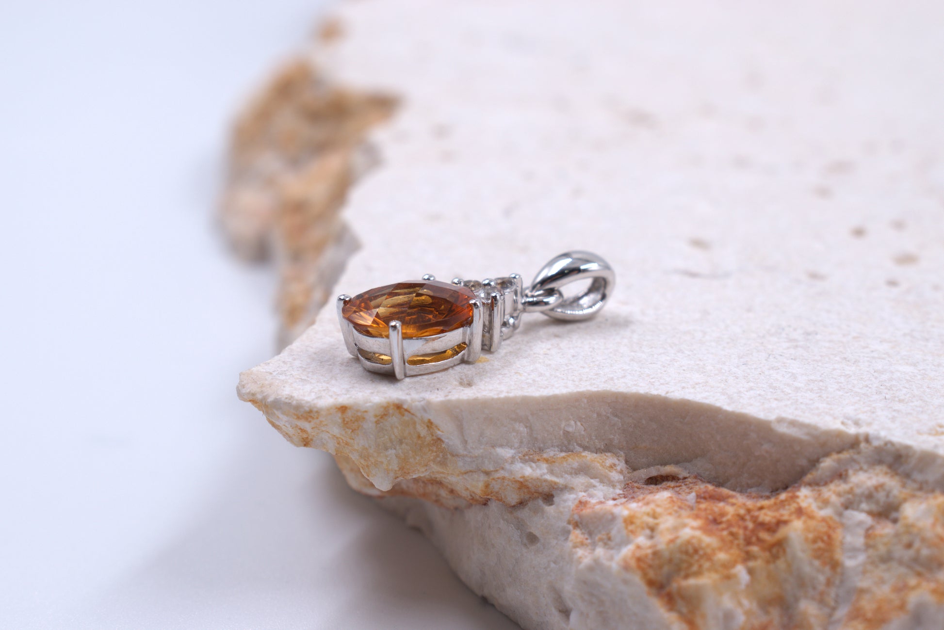 Sterling Silver Oval Citrine and White topaz Pandant (November Birthstone)