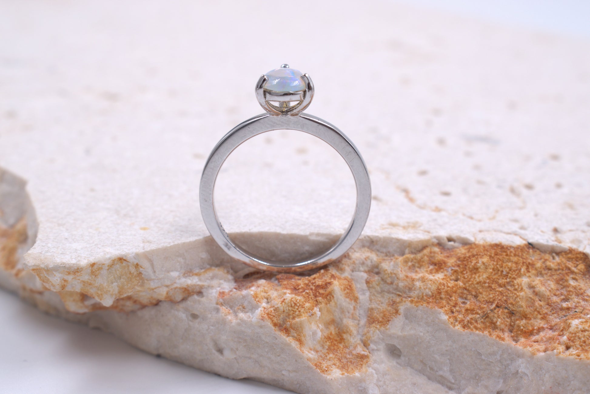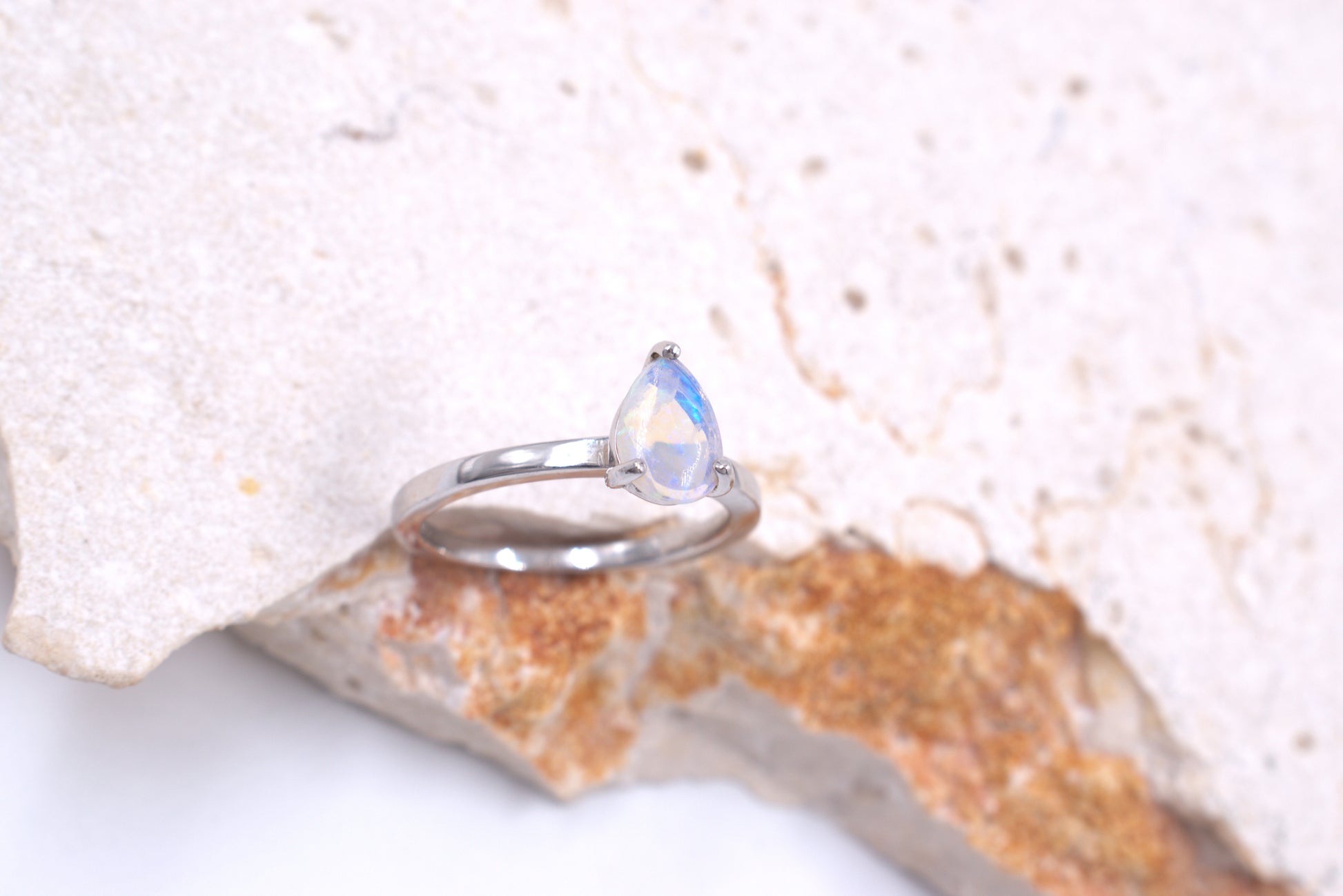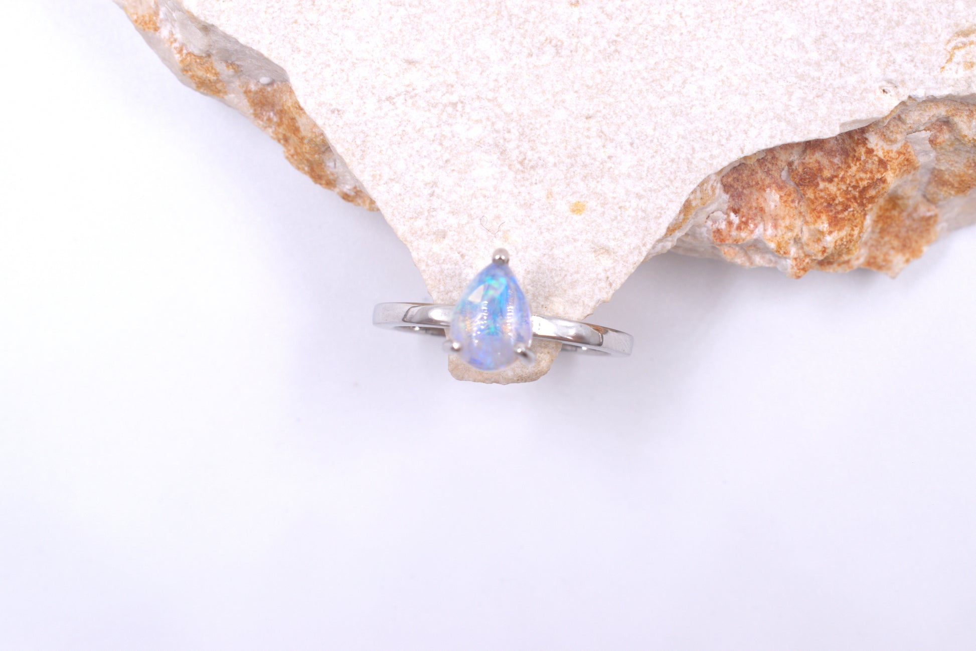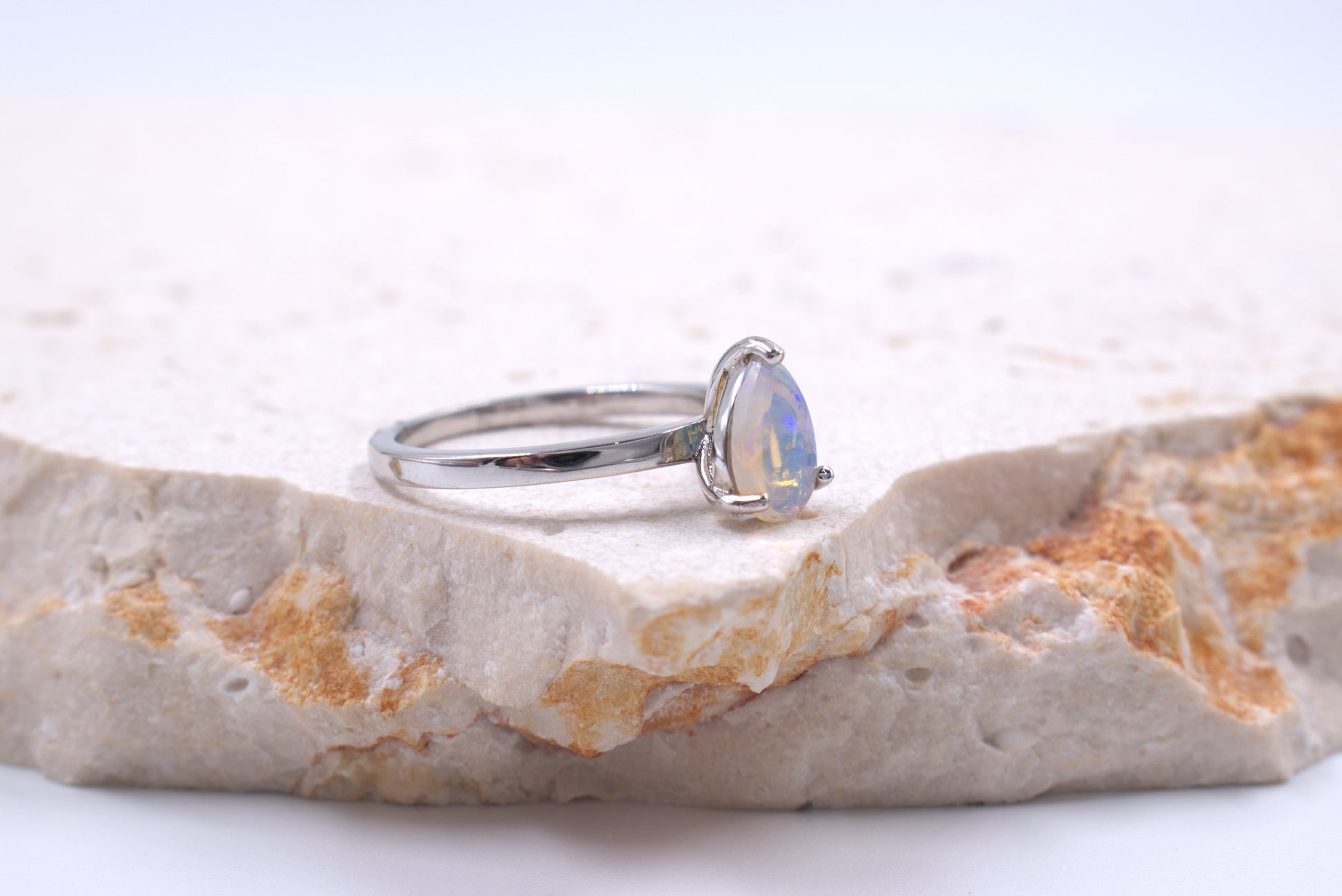 Sterling Silver Pear-shaped Australian Opal Solitaire style ring (October Birthstone)