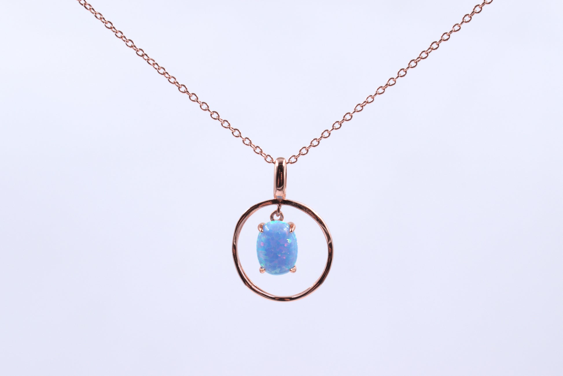 Sterling Silver Rose Gold Plated Lab Grown Light Blue Opal Necklace (October Birthstone)