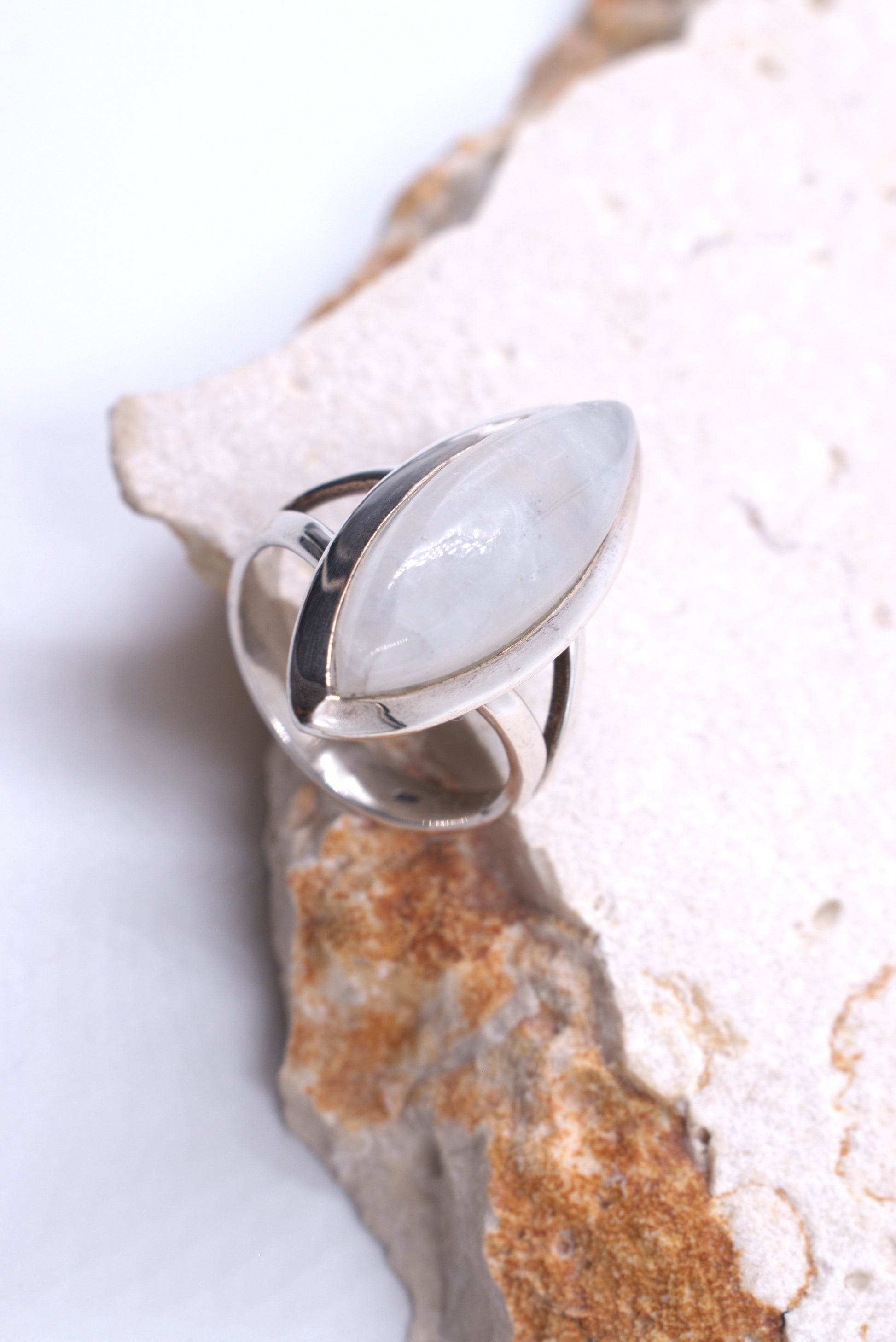 Sterling Silver Split Shank Marquise Moonstone Ring